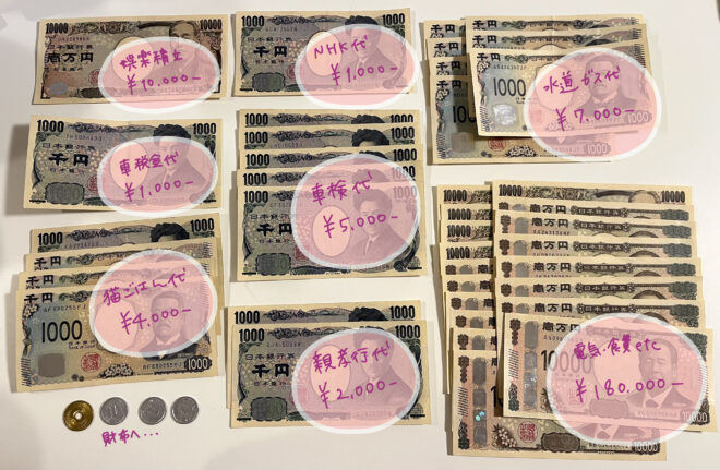 おろしたお給料を、仕分けた後、主人から預かったお金と合わせて